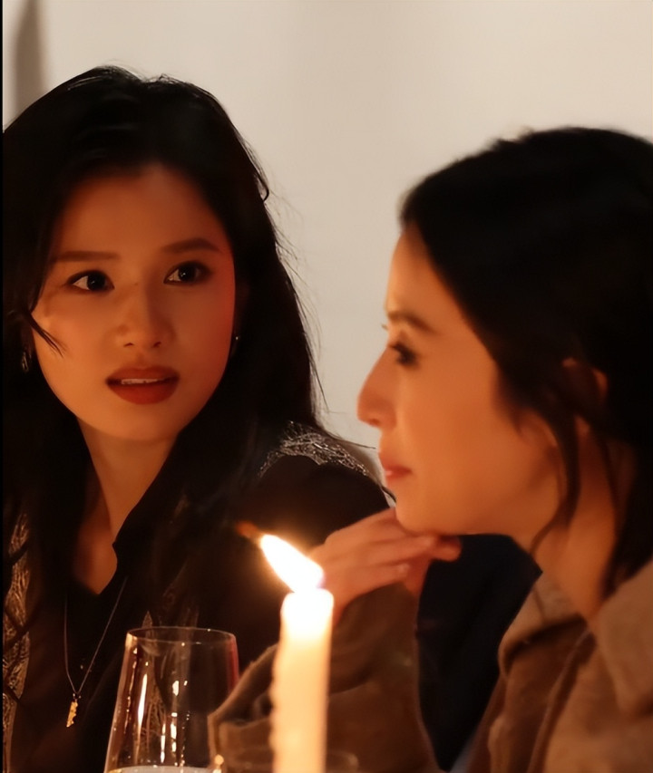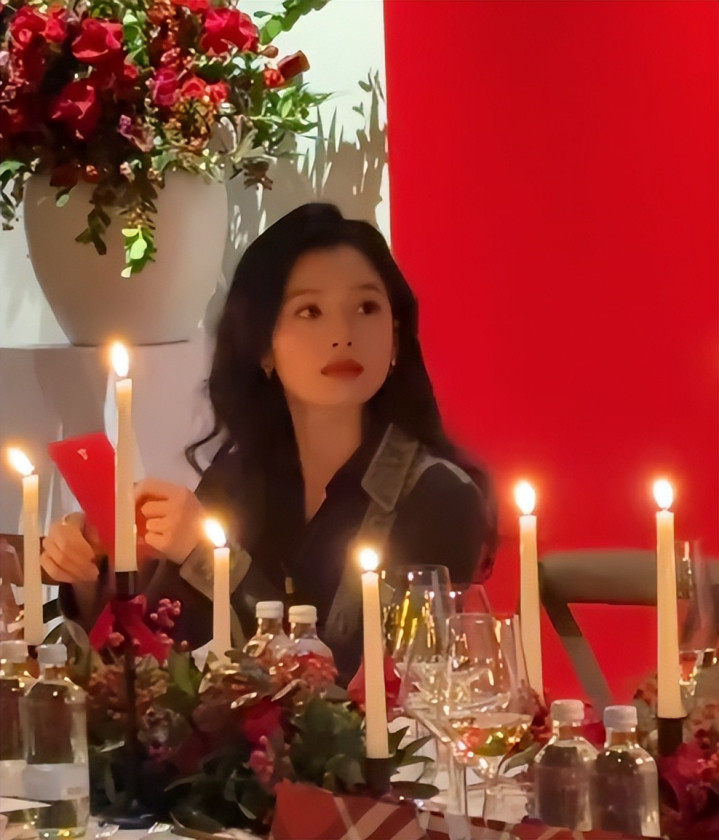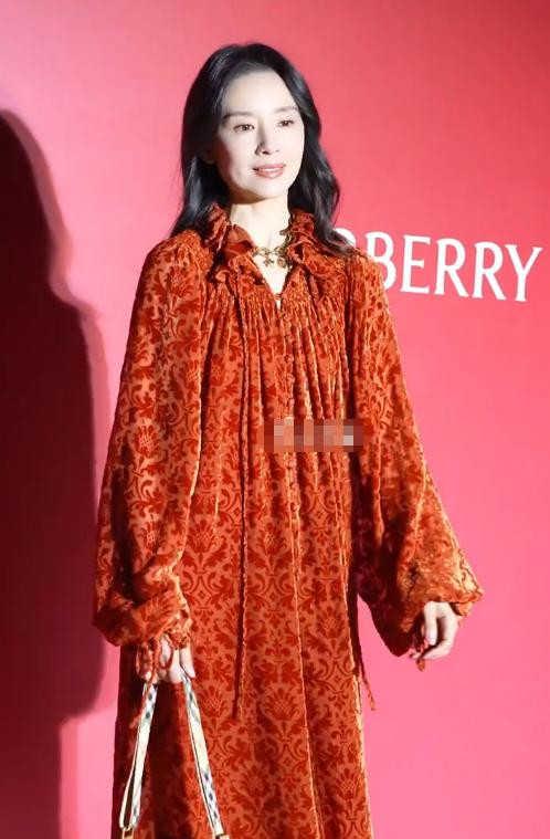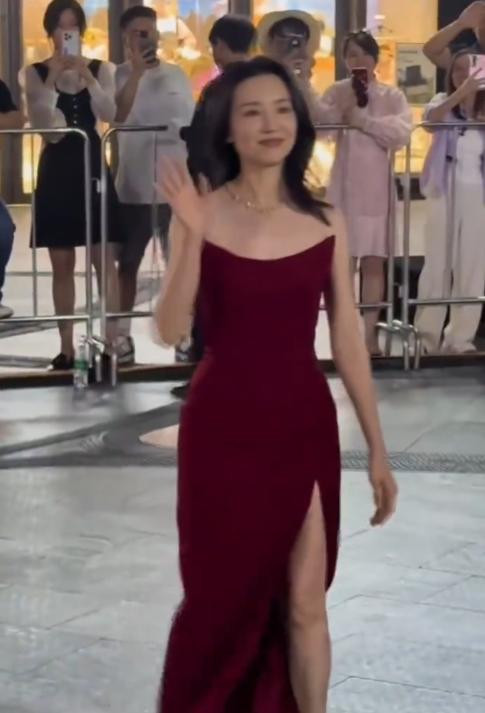 前段时间穿着裹胸的酒红色紧身裙,那才叫一个“风韵犹存”。
