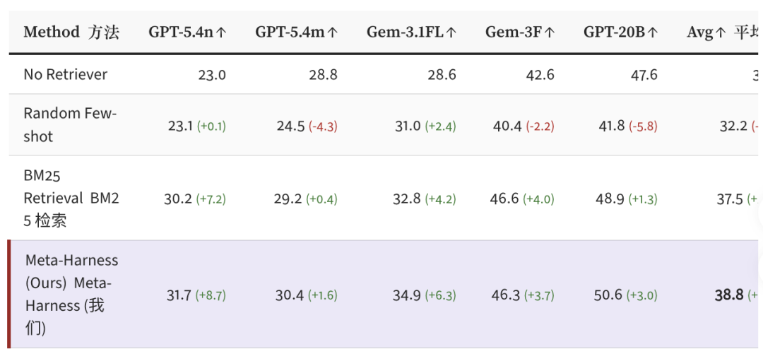 这说明Meta-Harness发现的策略是可迁移的,不是只对特定模型有效的过拟合技巧。