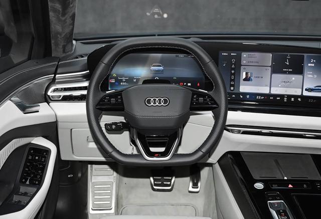 内饰方面,新车延续奥迪科技豪华格调,同时进行全面优化,质感与实用性双提升。座舱大面积采用软性材质包裹,搭配金属饰条与精致缝线,部分高配车型新增玛瑙棕内饰,触感细腻、档次感十足,标配带S line标识的铝制发光门槛条,细节处尽显卓越品质。核心配备12.3英寸全液晶仪表+10.1英寸中控屏+8.6英寸空调控制屏的三屏联动,搭载骁龙8295芯片,操作流畅不卡顿,支持“你好奥迪”多模态语音控制,全系标配5G网络,实现车车互通与道路危险提示,兼顾科技感与便捷性。